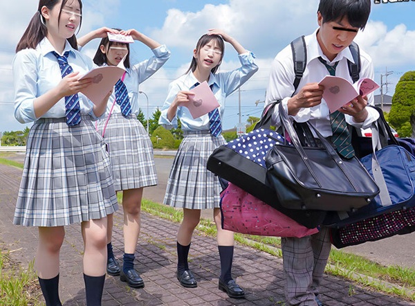 淫乱ビッチ女子校生の痴女誘惑に理性崩壊!レズ3Pプレイエロ誘惑でバキバキ思春期チンポをロリマンぶっこむラッキー宿泊性活!